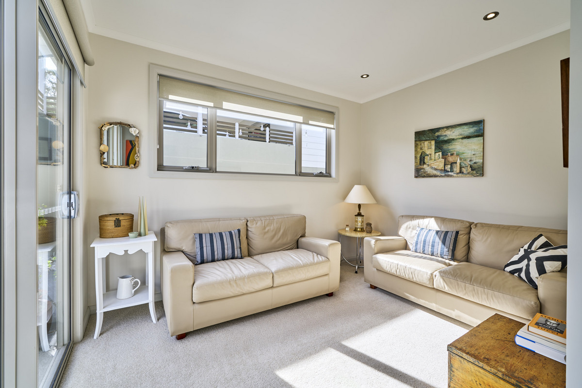 The versatile layout offers generous living across 165m2, with accommodation comprising with three oversized bedrooms and two luxurious bathrooms. The master bedroom captures incredible water views and enjoys a spacious walk-through robe and private ensuite bathroom. Downstairs, a self-contained guest suite is complete with its own bathroom, European laundry and convenient external access, providing an ideal retreat for teenagers, visitors or extended family.