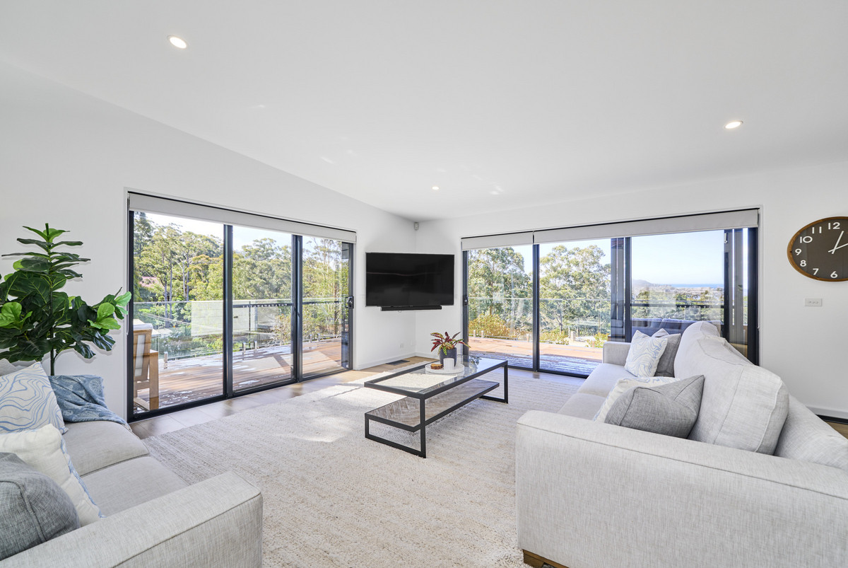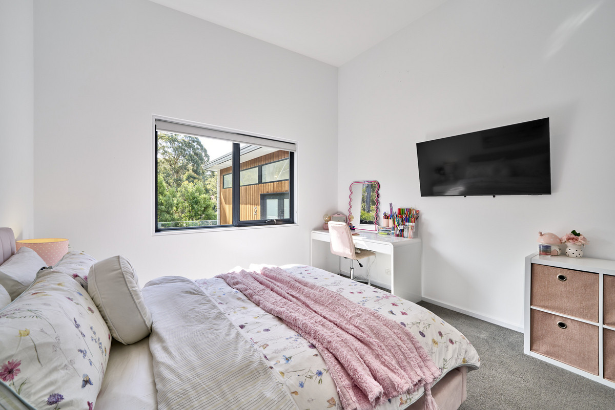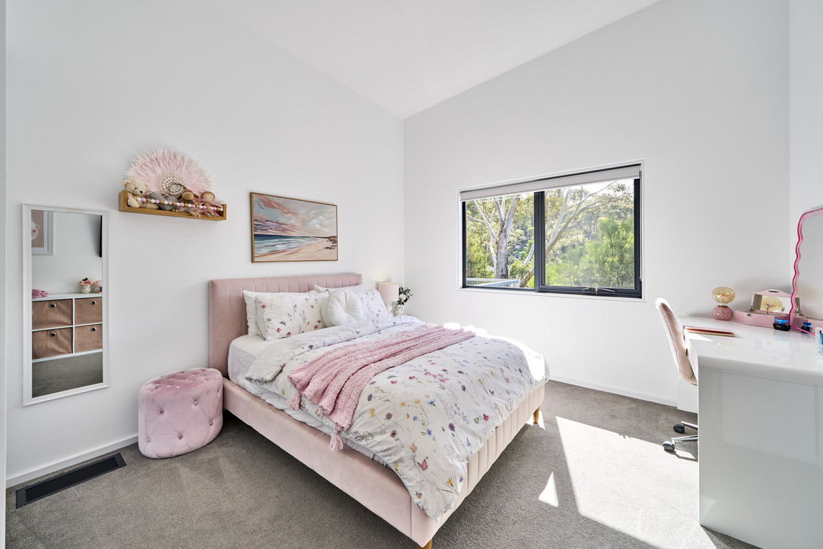 The main residence spans approximately 160m2 and showcases a suite of modern luxuries, from its cement-rendered exterior and ducted zoned air-conditioning to the impressive 16.72 kW solar system that ensures comfort and sustainability. A north-facing open-plan living and kitchen area frames sweeping, tree-lined vistas, while the home’s five bedrooms and three bathrooms are appointed with a contemporary sensibility and generous proportions, delivering both elegance and practicality.
