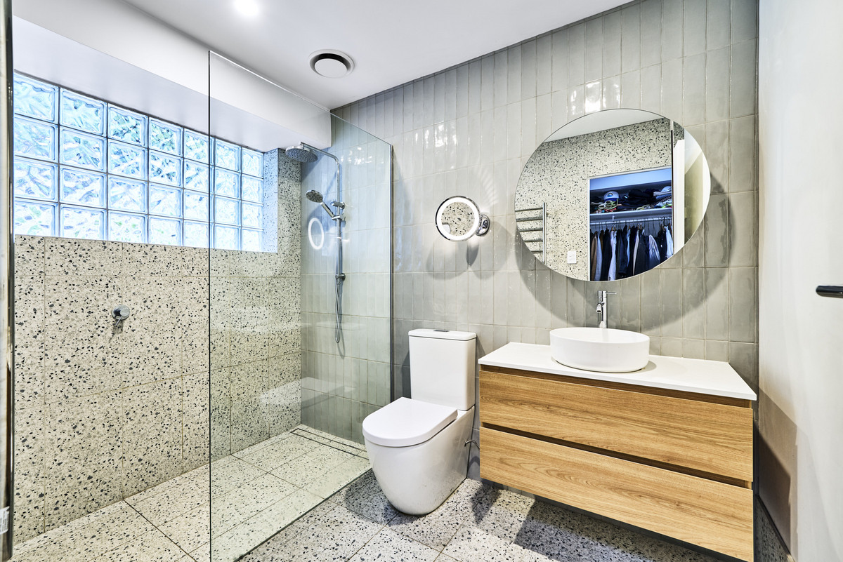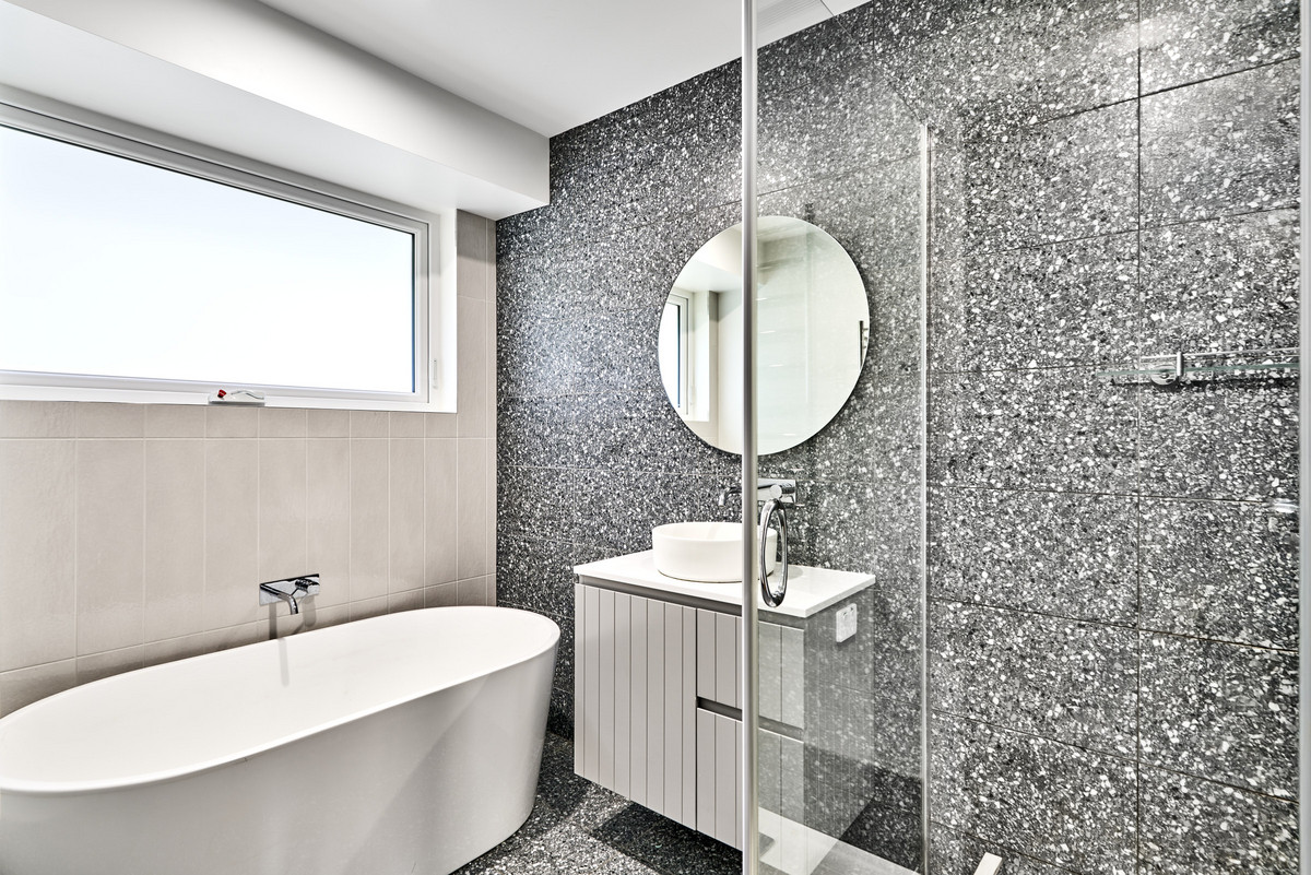 Accommodation includes five double bedrooms – four with built-in wardrobes and the primary with a walk-in wardrobe and private ensuite bathroom. All the bedrooms are located on the eastern side of the home, enjoying separation from the main living areas and serviced by a contemporary bathroom with standalone bath and separate toilet.