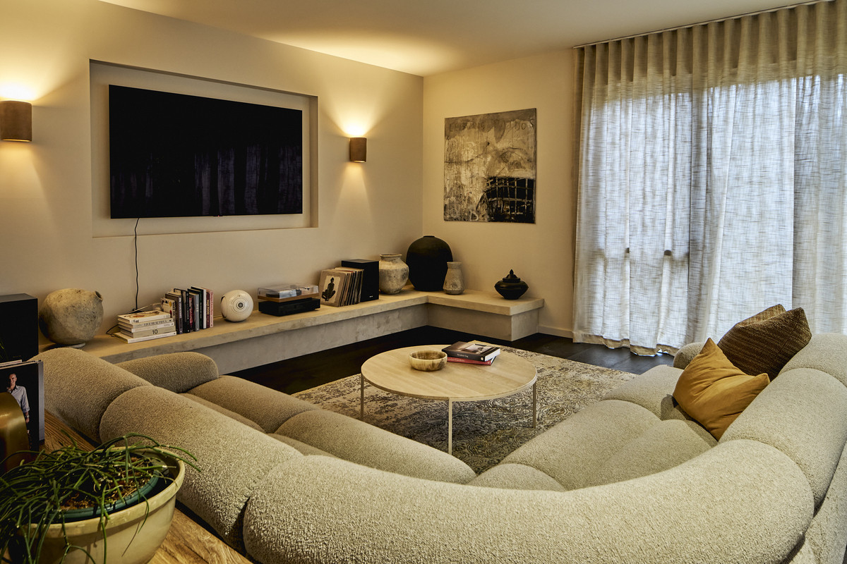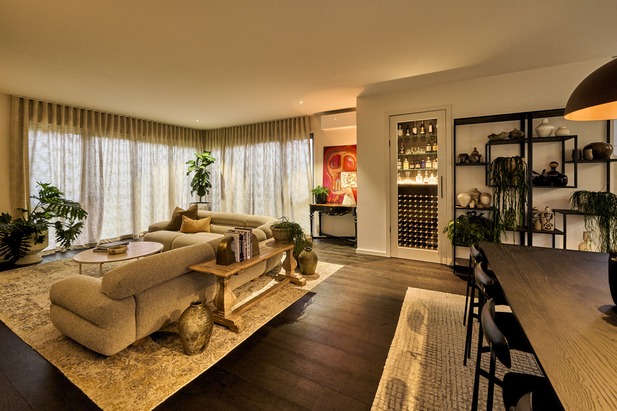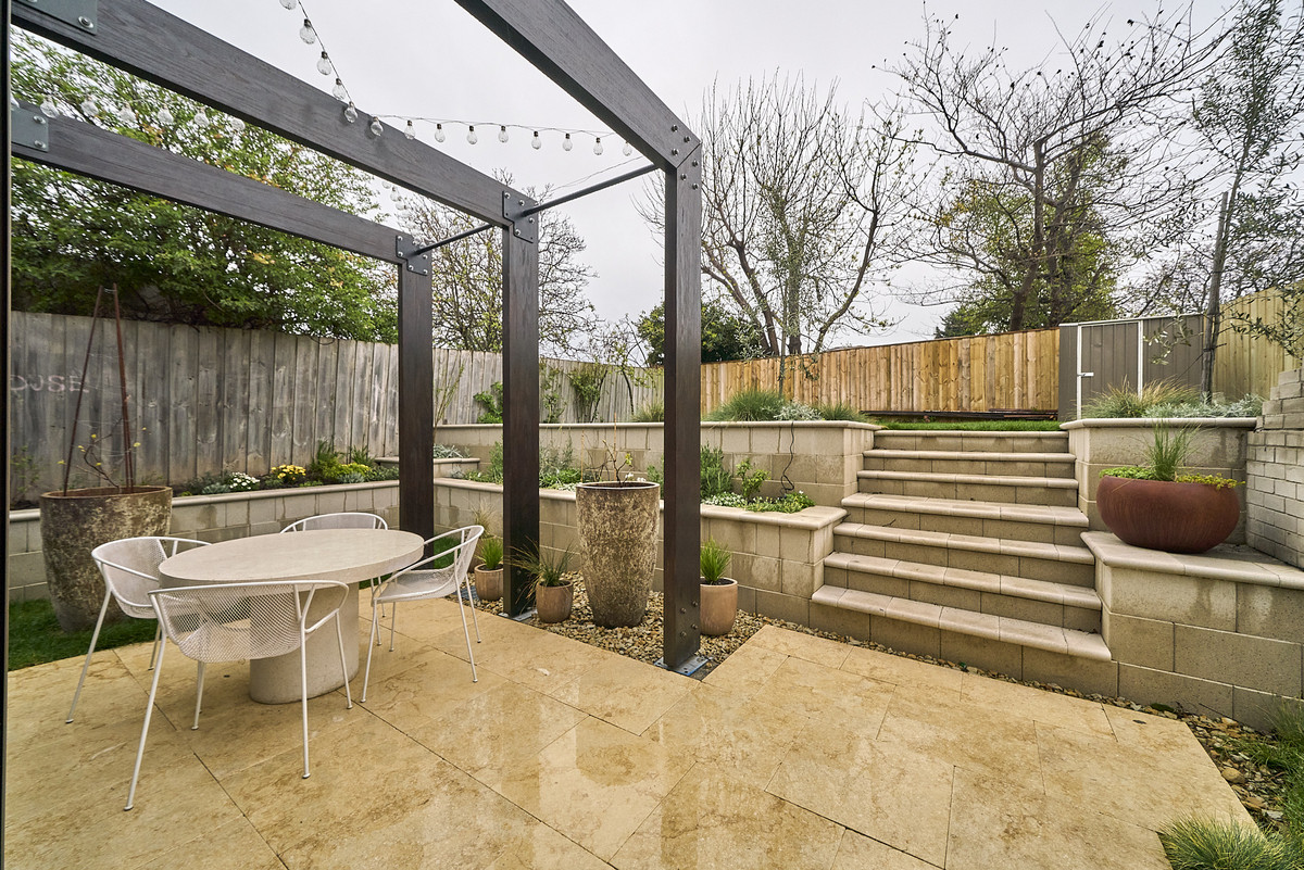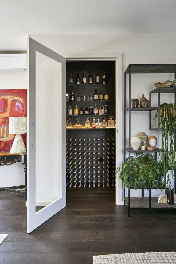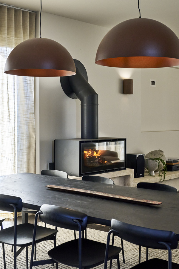 The north facing living room is warm and inviting and is centred around the ambient woodheater and rendered bench wrapping around the room. This space adjoins a custom built-in cellar with glass shelving. The living room effortlessly flows to the private outdoor area with pergola and grassed area, ideal for pets, kids and entertaining.