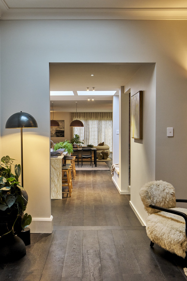 Upon entry, the enclosed verandah overlooking Mt Wellington leads to a large timber door. Rich blackened oak hardwood flooring leads you through the original zone featuring two bedrooms, a second living, library or sitting room and full bathroom and powder room.